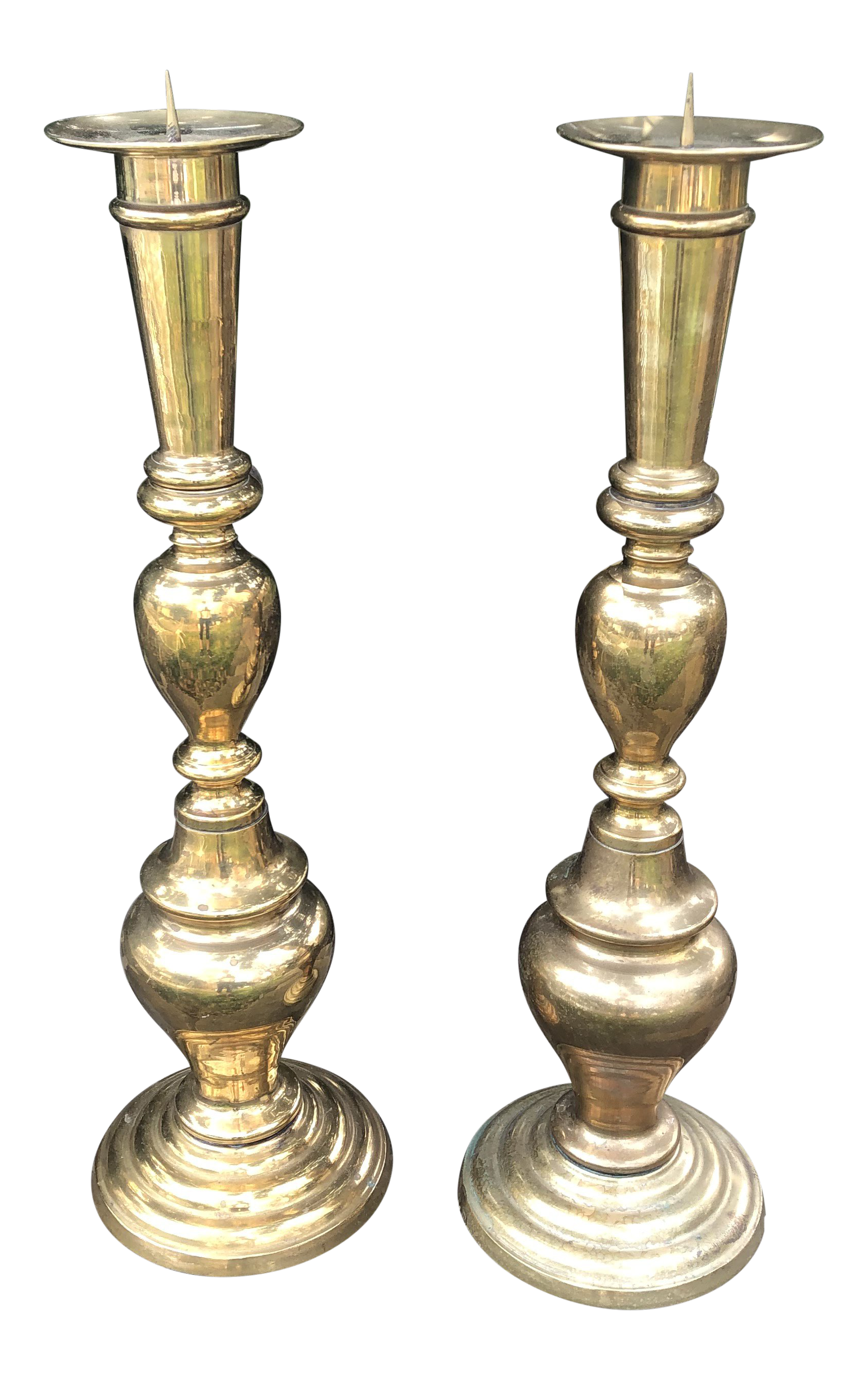 Large antique neoclassical gold color bronze 6 arm candle or electric chandelier. It is very big, 22 tall and 9 at the base. Incorporate the finishing touch to your antique or contemporary interior design with pieces from our vintage collection. We can make your custom design. Pair antique large brass wall mounted candlestick art nouveau wall sconces thank you for looking at my sale. Candle holders are marked made in india. Antique brass fire dogs and a pair of candle sticks, approx 26 cm high(4). Emmett antique brass taper candle holder 11.75 + reviews | crate and barrel. Candle holders & candlestick holders. Antique gigantic brass candle holders made in the late 19th century to early 20th century. Shop our large candle holders selection from the world's finest dealers on 1stdibs. Tags antique brass candle holders pillar brass candle holder four star brass candle holder geometric brass candle holder angled brass candle holder. Check out our antique brass candle selection for the very best in unique or custom, handmade pieces from our candlestick holders shops.