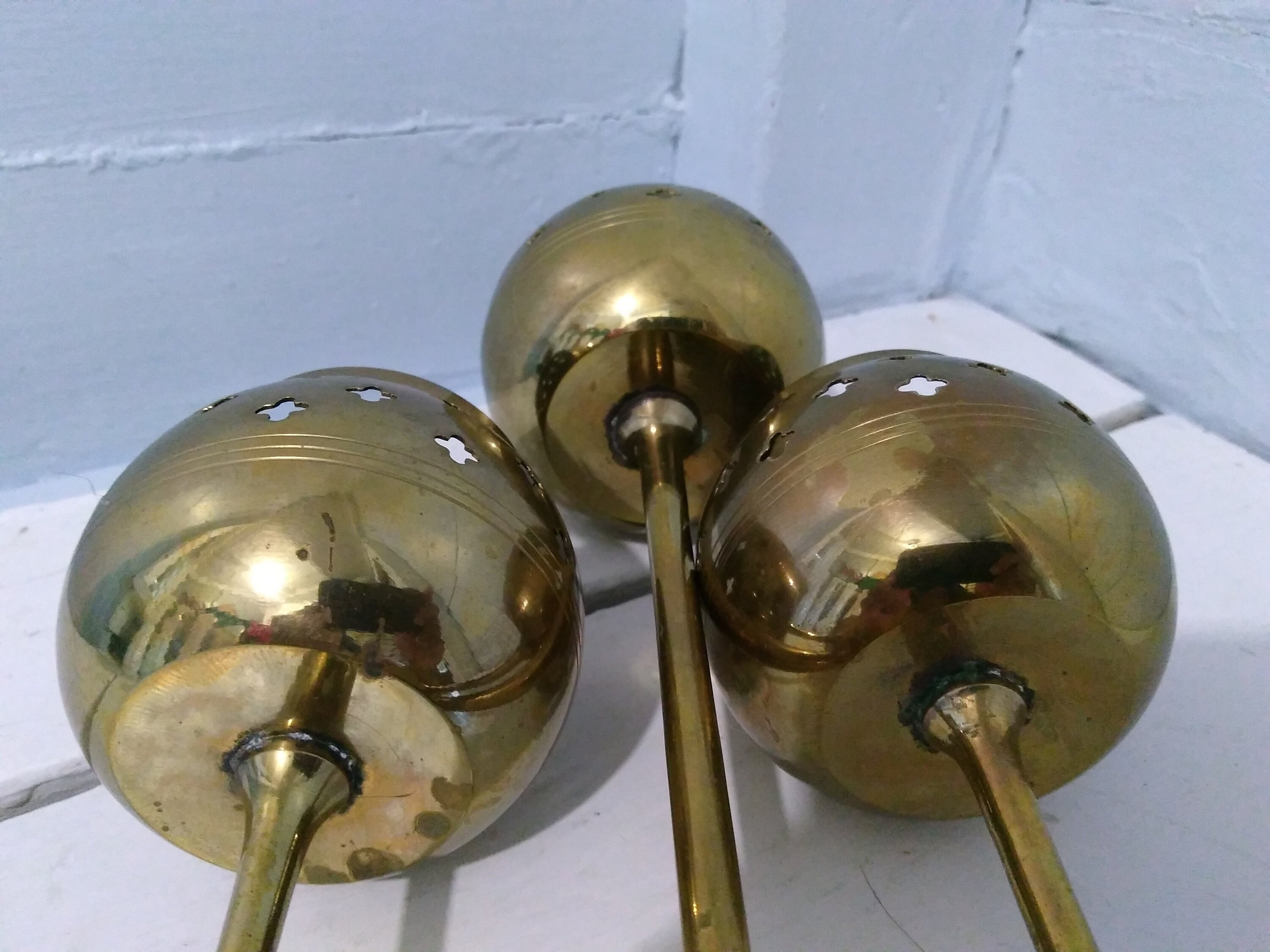 Candleholders candlesticks brass candle holders free wedding ship weddings ebay candle holders candle sticks. Group several for a glamorous display or place one alone to take center stage on an accent table. The safest materials for a pillar candle holder set of 3 are glass, wood, ceramic, or metal. Brass trumpet candle holders set of 3. Baldwin brass candlestick holders set of 3 identical 4.5 h x 2 w made usa vgc!